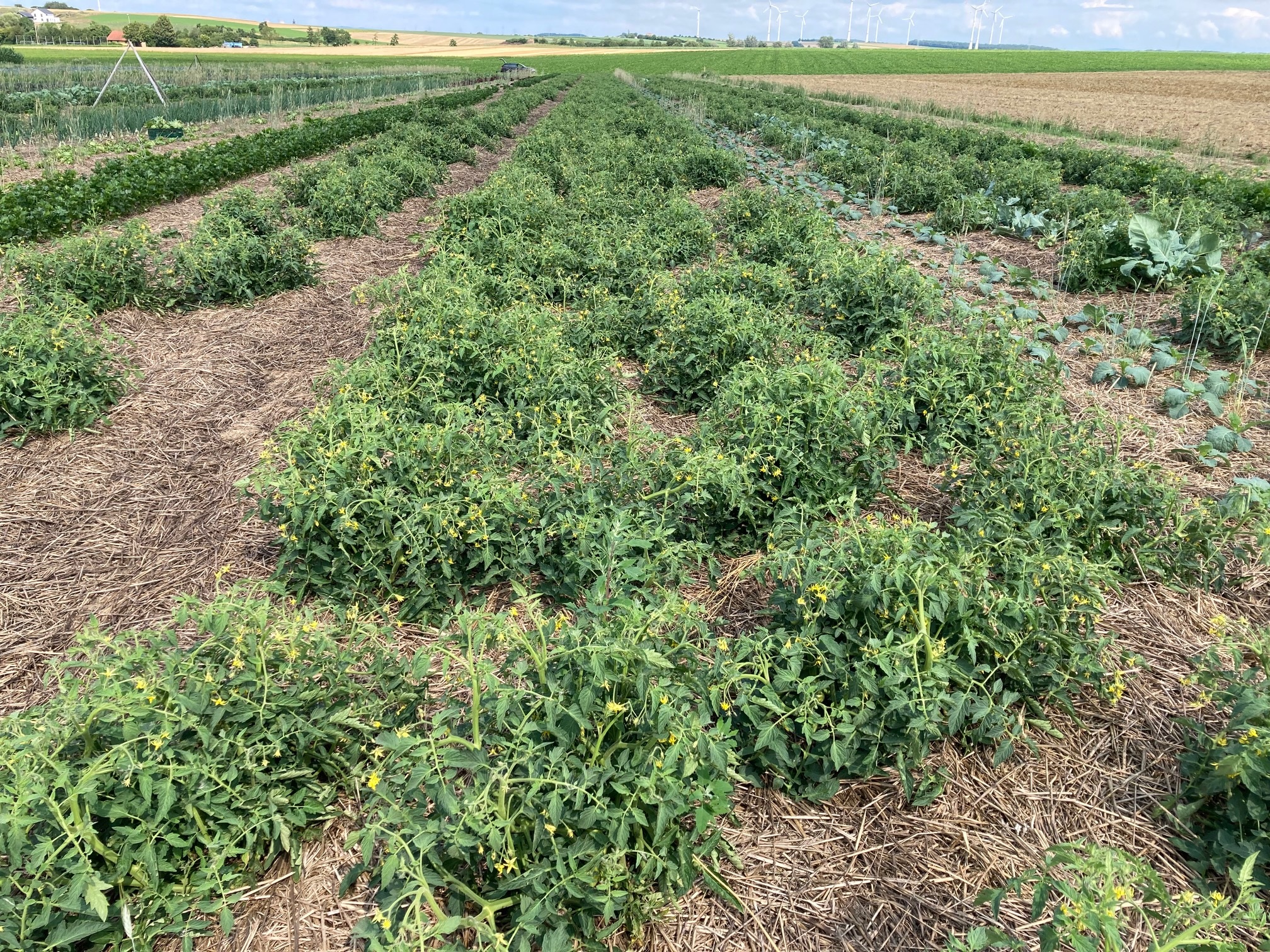 Die neuen Buschtomaten-Sorten wurden besonders für den Anbau in der Solidarischen Landwirtschaft mit Möglichkeit zur Verarbeitung zu Passata, Tomatenmark oder eingekochten ganzen Früchten zur Versorgung über den Winter sehr positiv getestet. Auch die Trocknung in einer professionellen Anlage war erfolgreich. Für großflächigen Feldanbau ist es optimal, verschiedene Absatzwege inklusive Frischmarkt einzurichten. Der Anbau auf Strohmulch wird empfohlen, um die Früchte trocken und sauber zu halten. Mäuse- und Schneckenfraß möglichst vorbeugen. Die Haupternte findet in August und September statt.